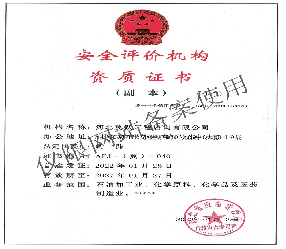 • 安全評(píng)價(jià)機(jī)構(gòu)資質(zhì)證書(shū)